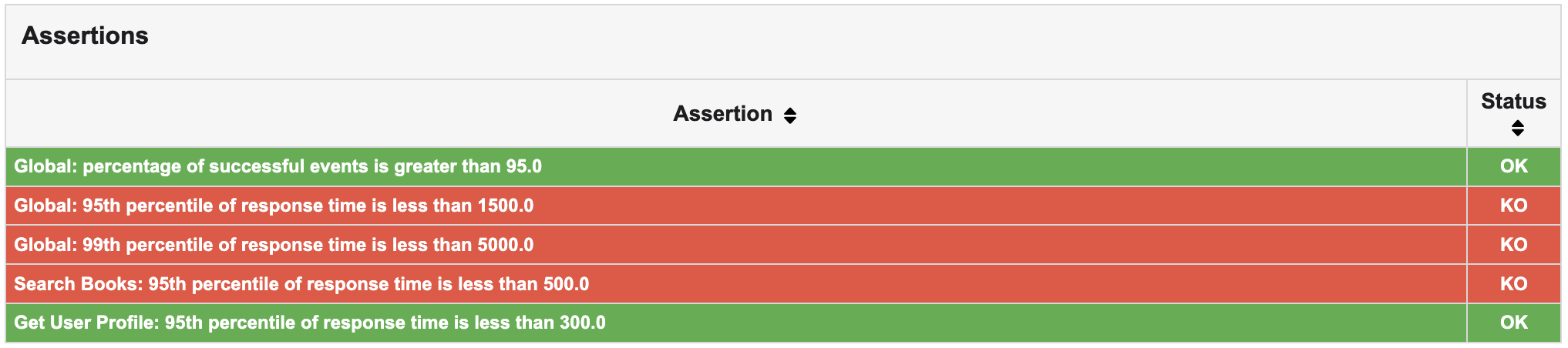 개선 전에는 p95, p99 assertion이 모두 실패했으나, 개선 후에는 모든 assertion을 통과했다.