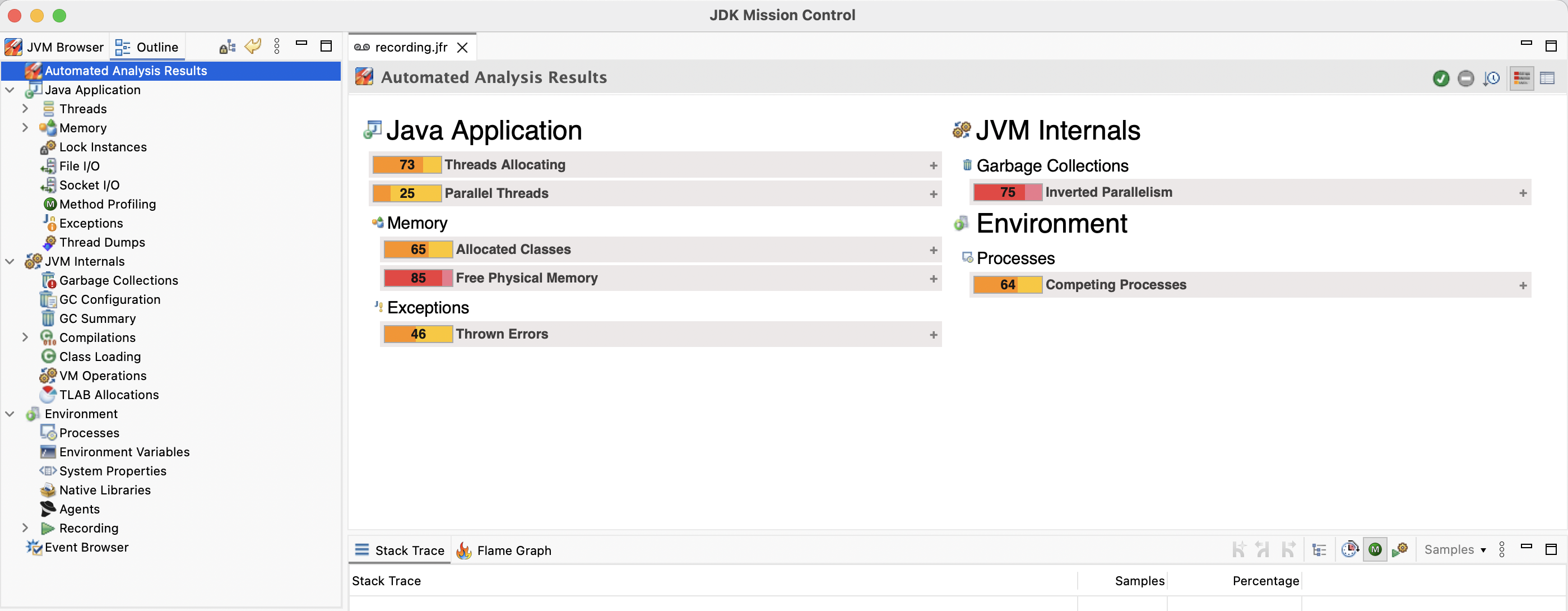 - Flight Recorder (JFR): 애플리케이션의 상세한 런타임 데이터를 수집하여 성능 병목 현상, 메모리 누수, 스레드 문제 등을 분석.