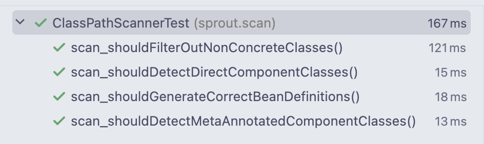 그리고 구체 클래스만 스캔하도록 했다. interface나 abstract 자체를 빈으로 등록하지 않는다. 물론 추후에 구현체를 넣어 interface로도 동작할 수 있게 조치해뒀지만 스캔 레벨에서 비교적 가볍다.