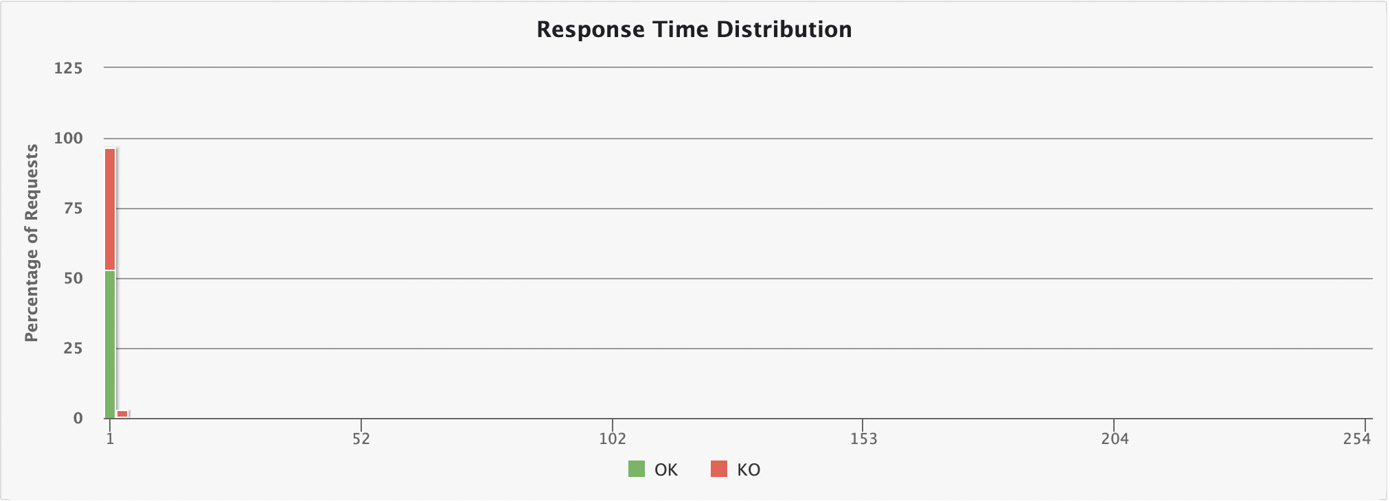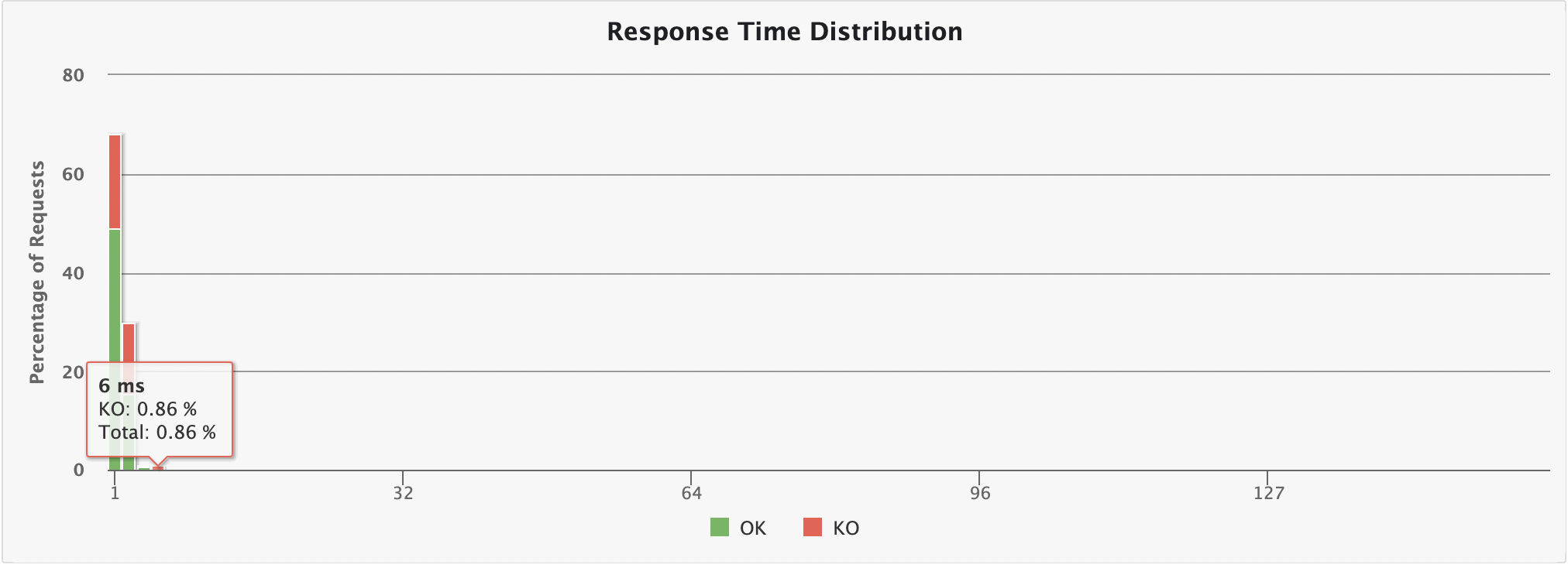 지연 시간은 아주 짧다. 모든 OK 응답이 1ms에 도착했고, KO인 몇몇 응답은 2ms에 도착했다.
