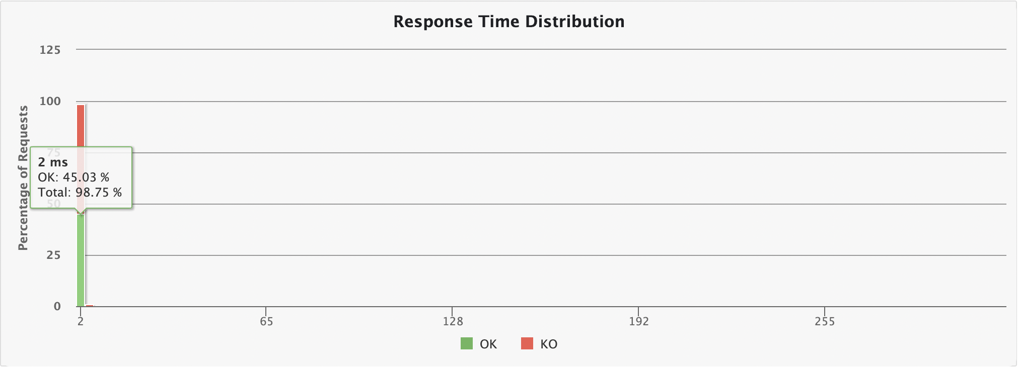 98.75%의 응답이 2ms 에 도착한 것을 확인할 수 있다. 지연시간은 준수하다.
