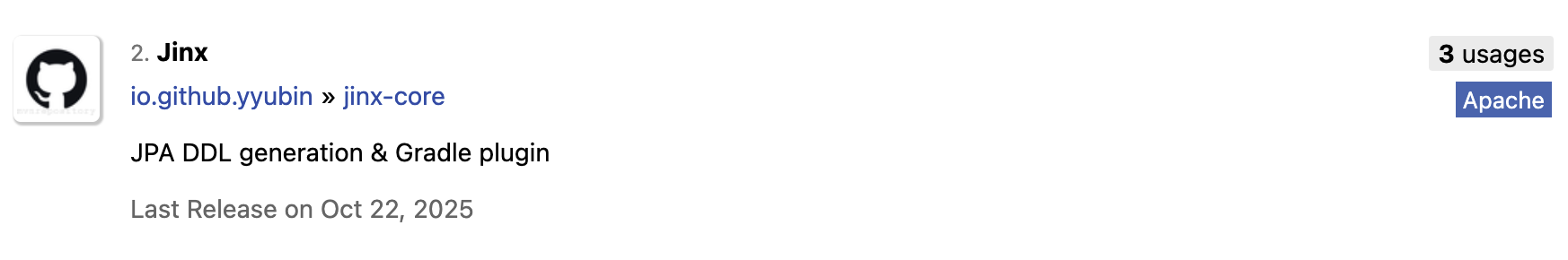 maven repository에서 찾을 수 있는 모습..!