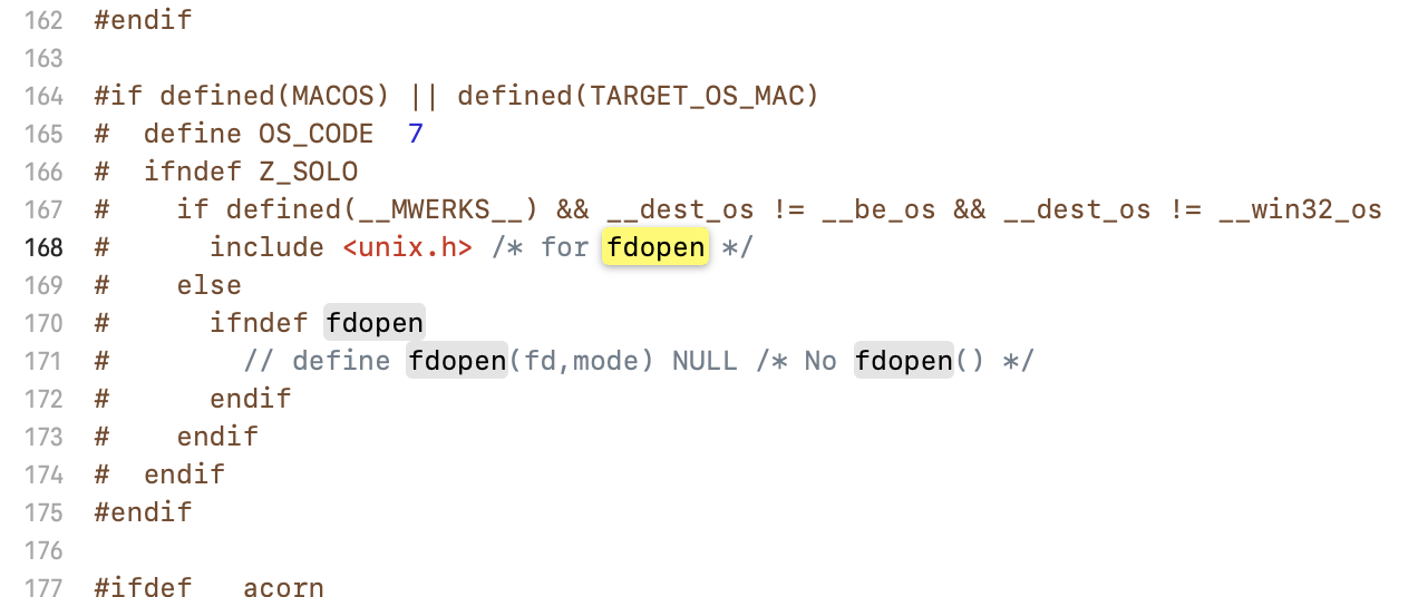 fdopen이라는 표준 시스템 함수가 zlib 내부 매크로로 재정의되었는데, 이것이 macOS SDK의 stdio.h 안의 진짜 fdopen() 함수와 충돌해서 컴파일이 깨진 상황임..